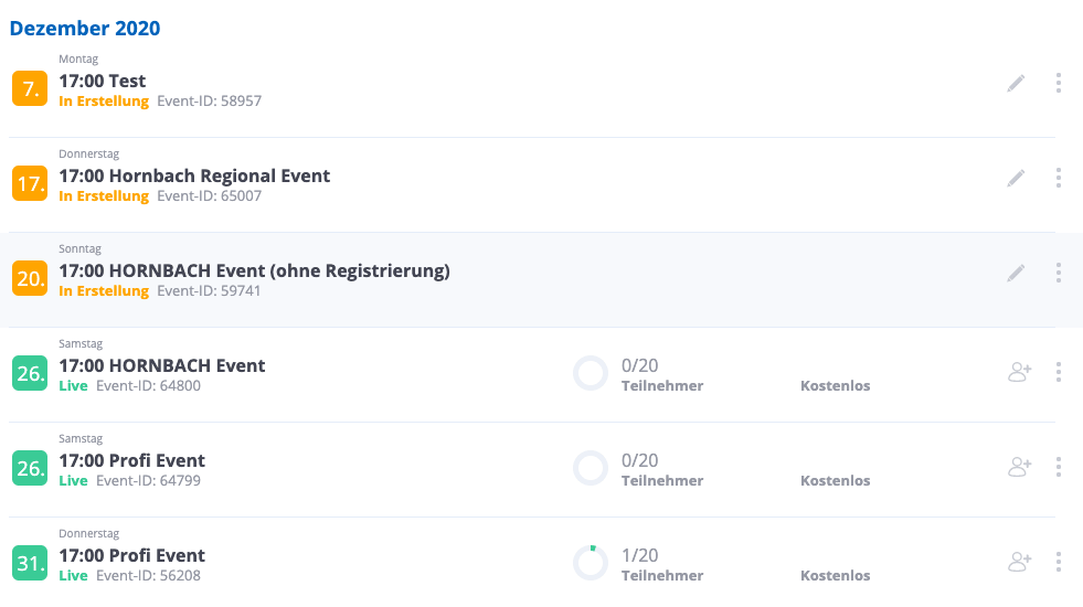 Veranstaltungen im Status "Live" können Sie diese über das Dreipunktemenü kopieren.