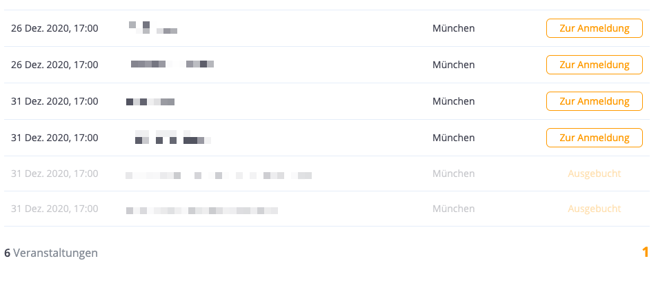 - Was sehe ich wenn ich auf "Veranstaltungen" klicke?
